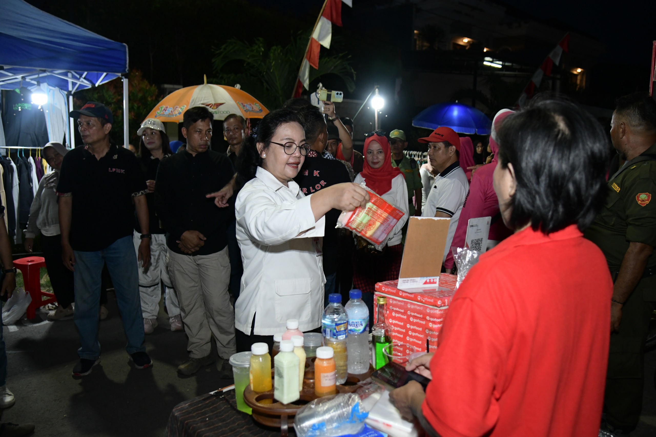 Saat meninjau stan para pedagang, Agustina juga mencuri perhatian pengunjung saat mampir ke seorang penjual jamu yang berjualan sambil melakukan siaran langsung di TikTok. Penjual jamu ini sebelumnya sempat viral karena berjualan sambil bernyanyi, dan kini semakin menarik perhatian dengan strategi promosi daring.