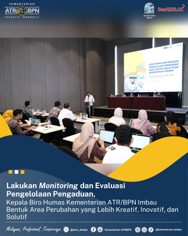 Lakukan Monitoring dan Evaluasi Pengelolaan Pengaduan, Kepala Biro Humas Kementerian ATR/BPN Imbau Bentuk Area Perubahan yang Lebih Kreatif, Inovatif, dan Solutif