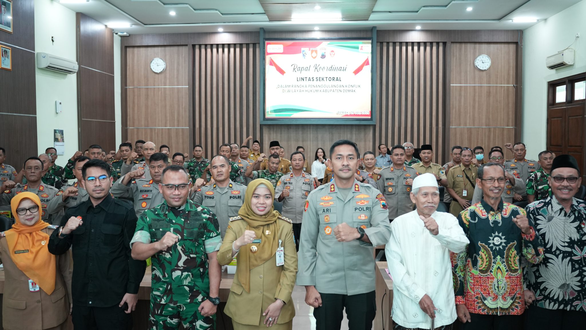 DEMAK – Pemerintah Kabupaten Demak bersama Forum Koordinasi Pimpinan Daerah (Forkopimda) menggelar Rapat Koordinasi (Rakor) Kewaspadaan Dini bersama Forum Koordinasi Pimpinan Kecamatan (Forkopimcam), Selasa (29/7/2025) di Grhadika Bina Praja.