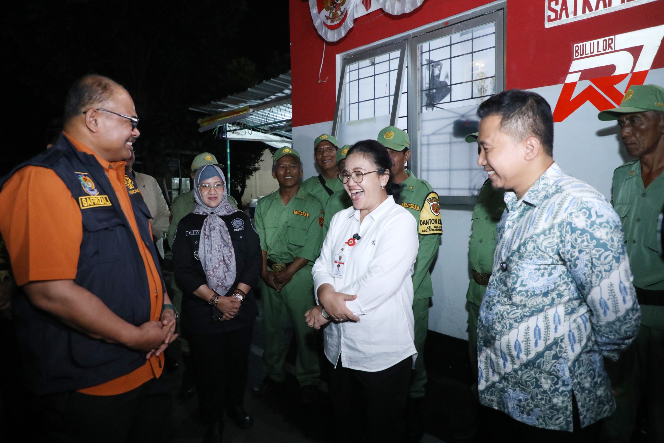 BERSAMA : Wali Kota Semarang Agustina Wilujeng P bersama para petugas keamanan Kelurahan Bulu Lor Kecamatan Semarang Utara
